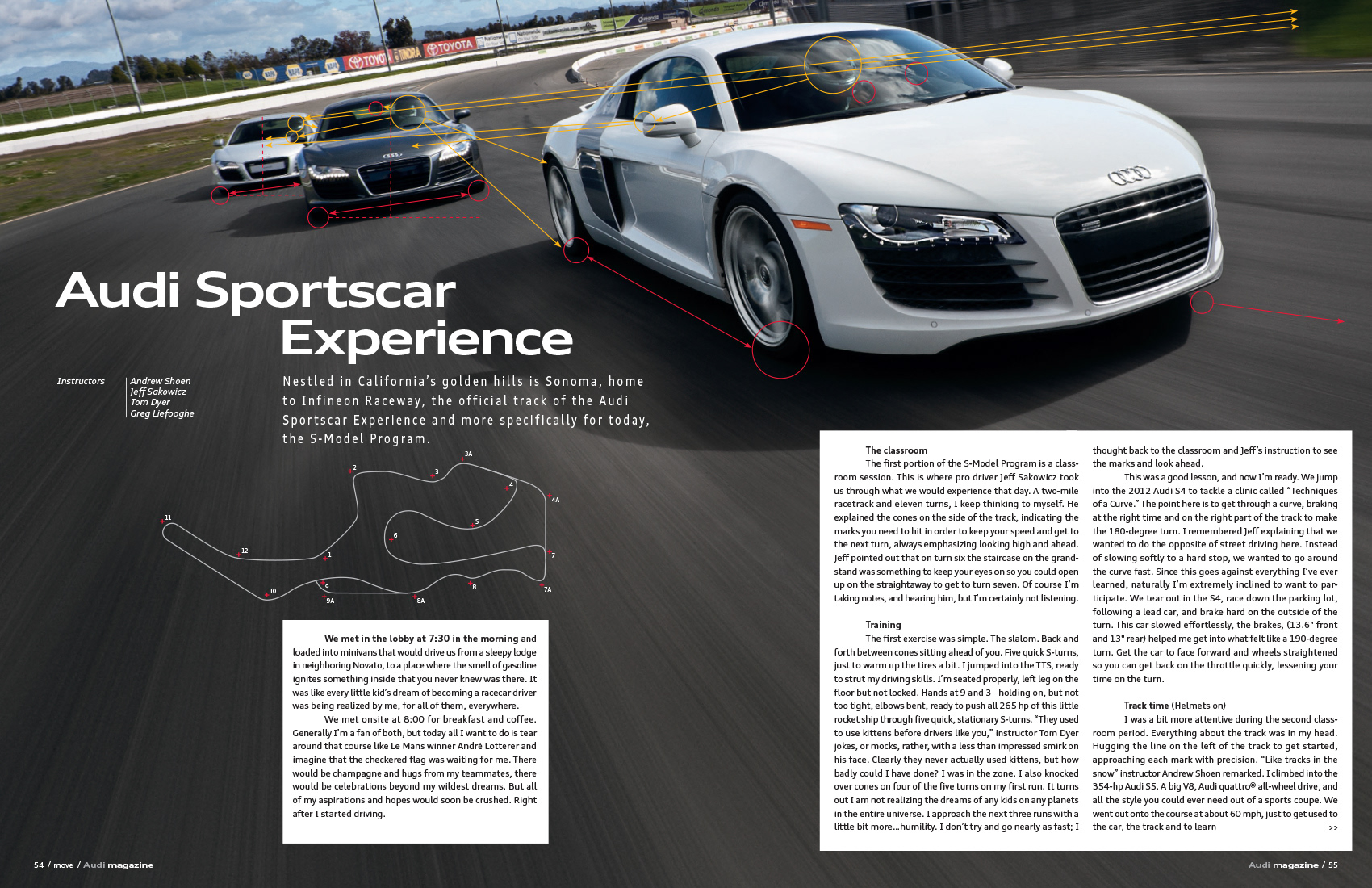 In an effort to introduce the country to the Audi Sportscar Experience, I went on assignment for Audi Magazine, and took a trip to Sonoma Raceway, in beautiful Northern California to drive the Audi S4, S5, TTS and the impressive Audi R8 Supercar.
